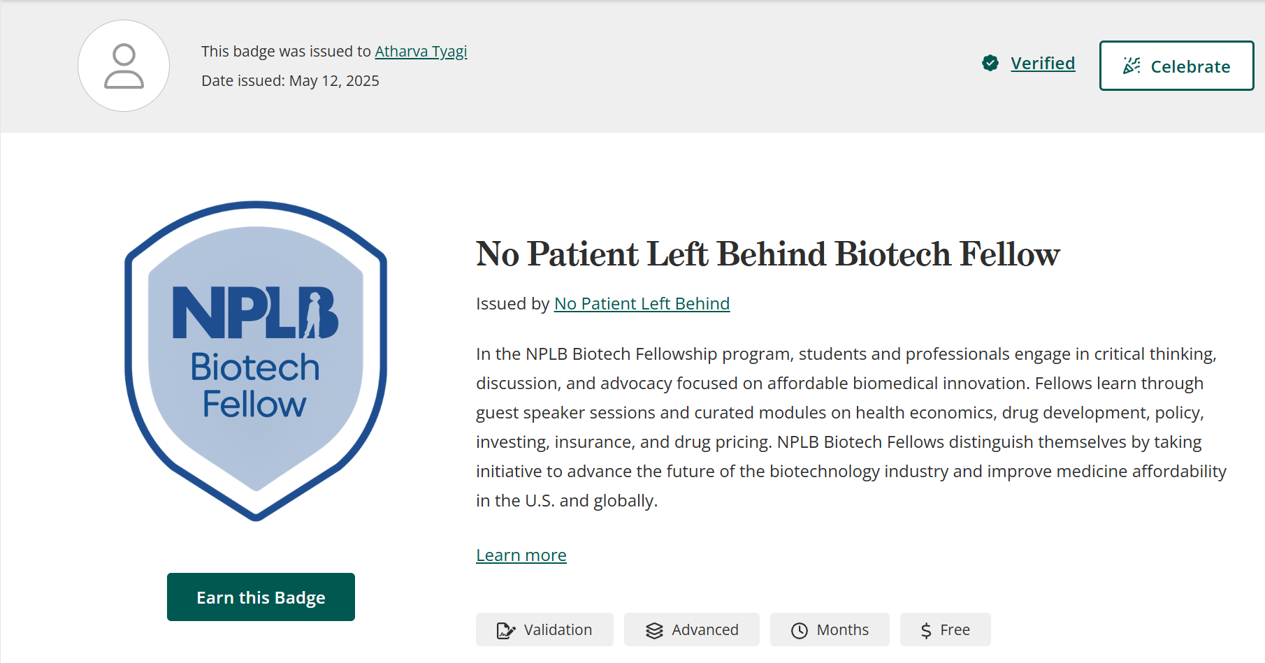 The NPLB Fellowship was a defining experience because it placed me in the same room as leaders I had only read about and challenged me to think at their level. Listening to CEOs, scientists, and policymakers discuss the real constraints behind drug pricing and access gave me a front-row view of how systemic change happens. As the only high school fellow, I learned how to translate scientific ideas into policy and business language, and how to advocate for patients through both data and empathy. It reinforced why I want to build a career at the intersection of discovery, economics, and care: where innovation only matters as long as no patient is left behind.